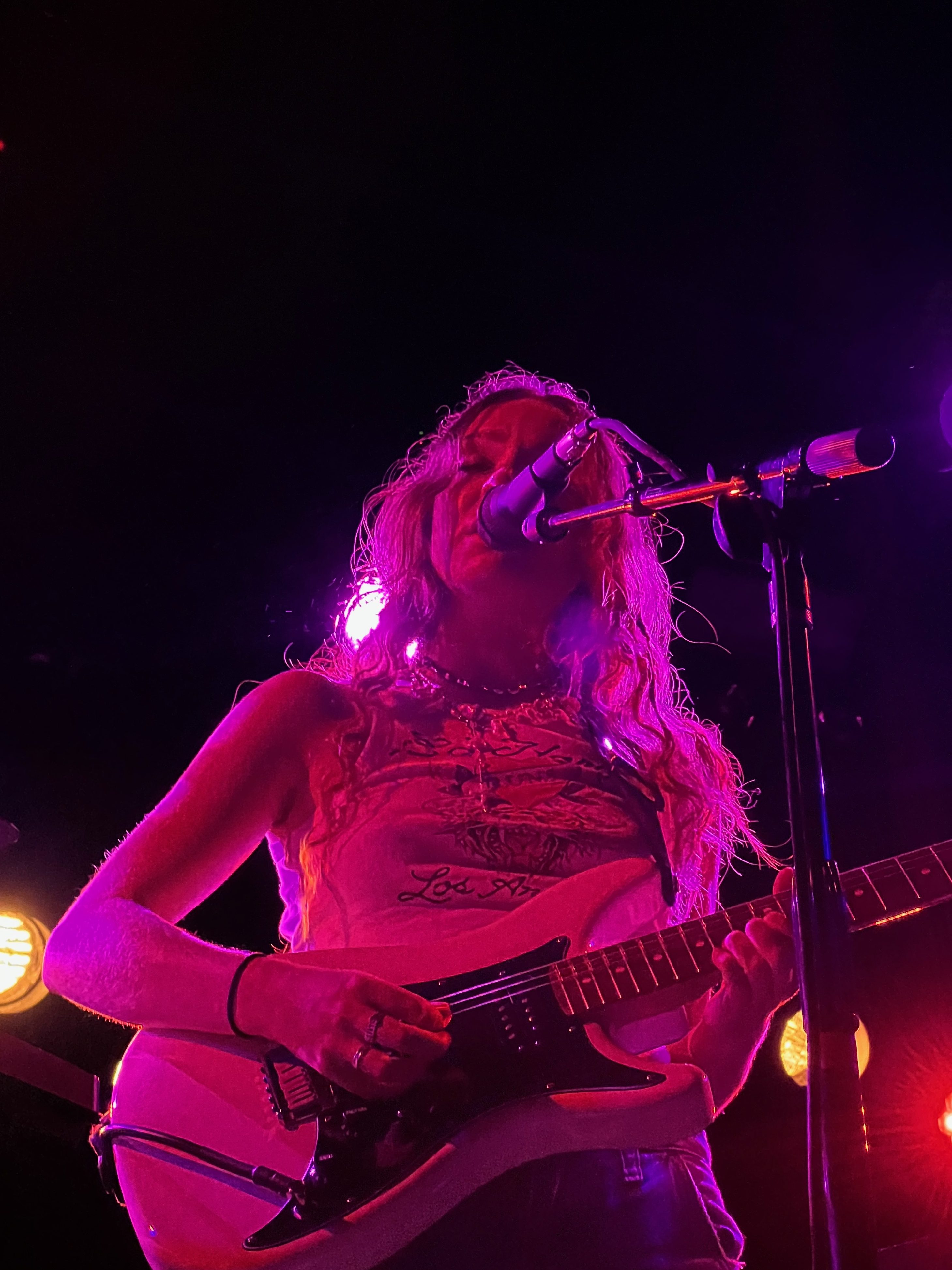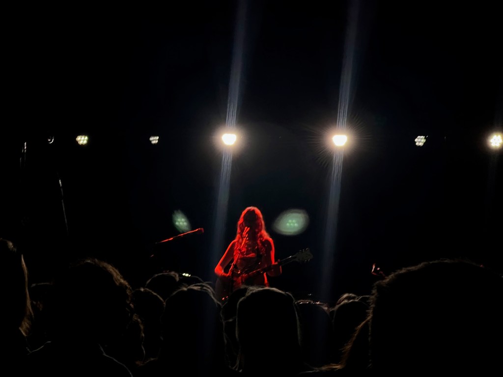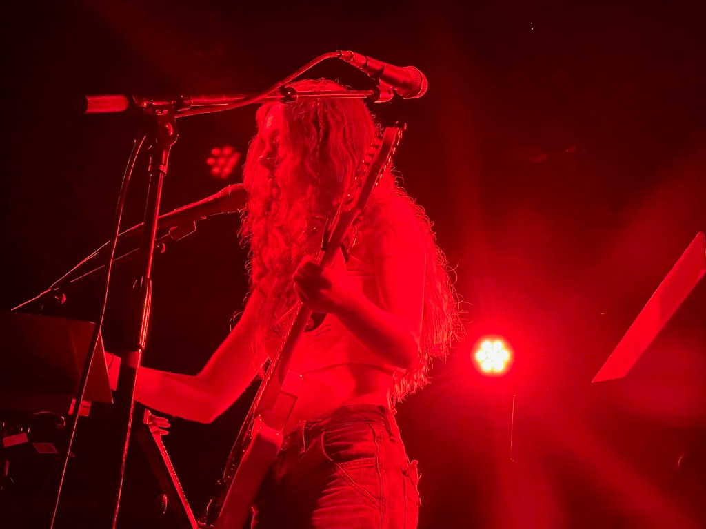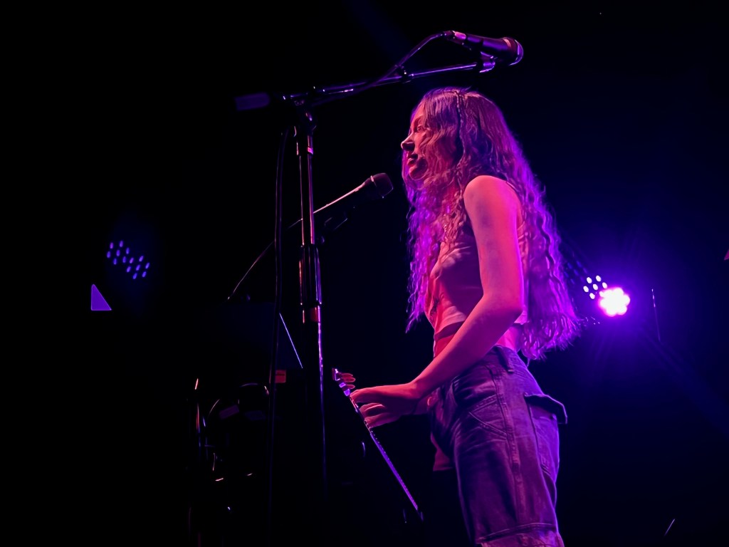 Humberstone took on the stage in her signature trendy look– baggy pants, platform sneakers, an electric guitar slung around her shoulder, and long curly hair adorned with two small braids. She began her set with a rendition of “Overkill”– a relatable tune about struggling to confess romantic feelings. Despite the vulnerable lyrics, Humberstone captivated the sold-out club with her ethereal overlapping melodies.