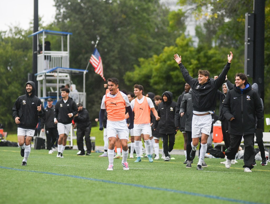 Emmanuel’s bench celebrates DiPace’s goal.
