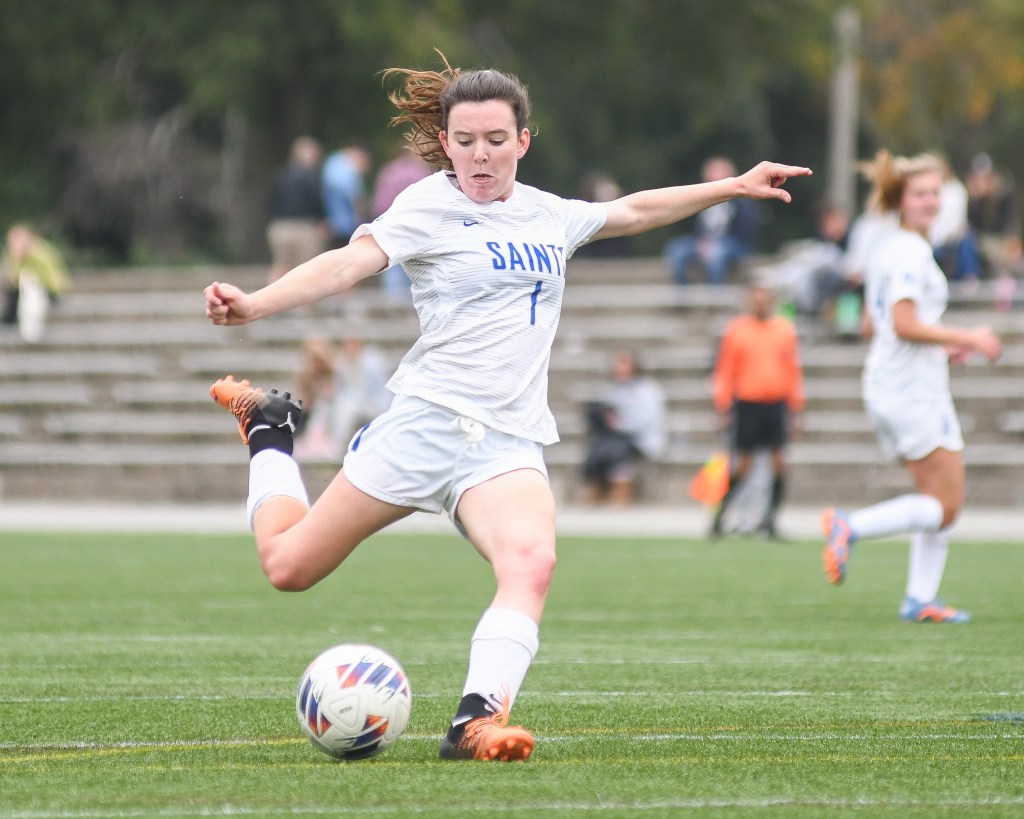 Dullaghan jumps for joy after her goal gives the Saints a 2-1 lead.