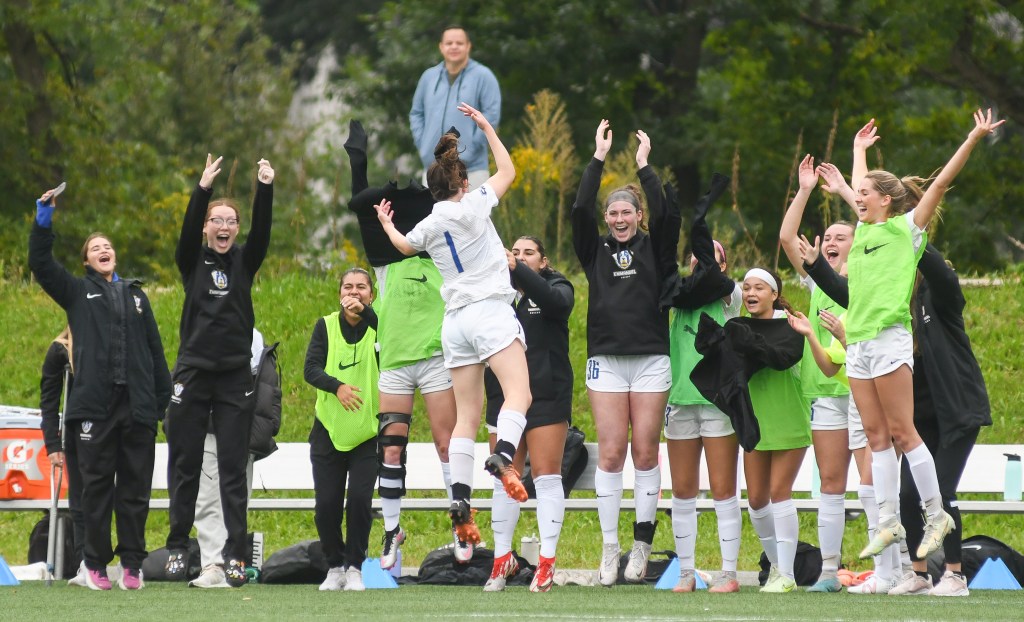Saints celebrate Maya Daryanani’s (#24) goal that put them up 1-0.
