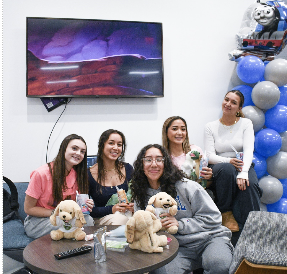 Members of the Women’s Volleyball smile for a picture enjoying the festivities.