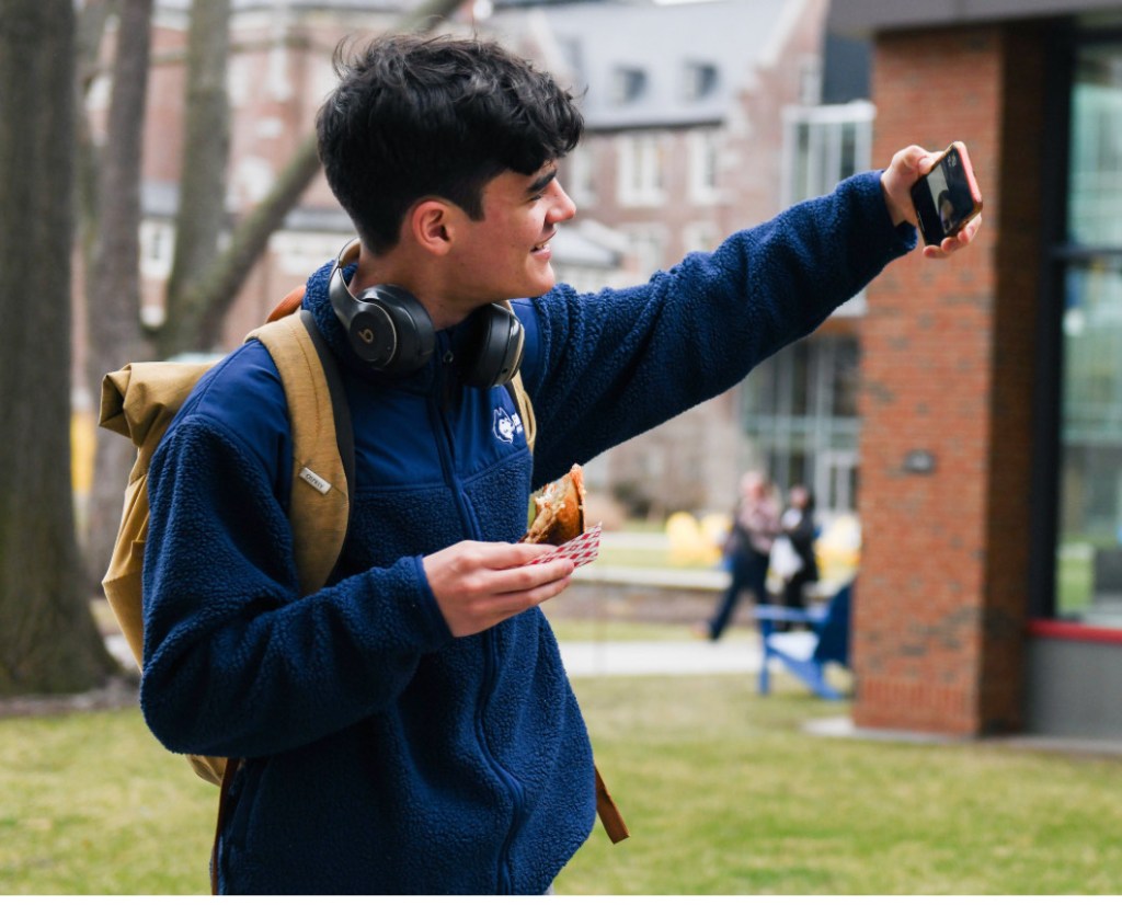 Mark Brown, ’27, shows off one of the food trucks on campus to a friend